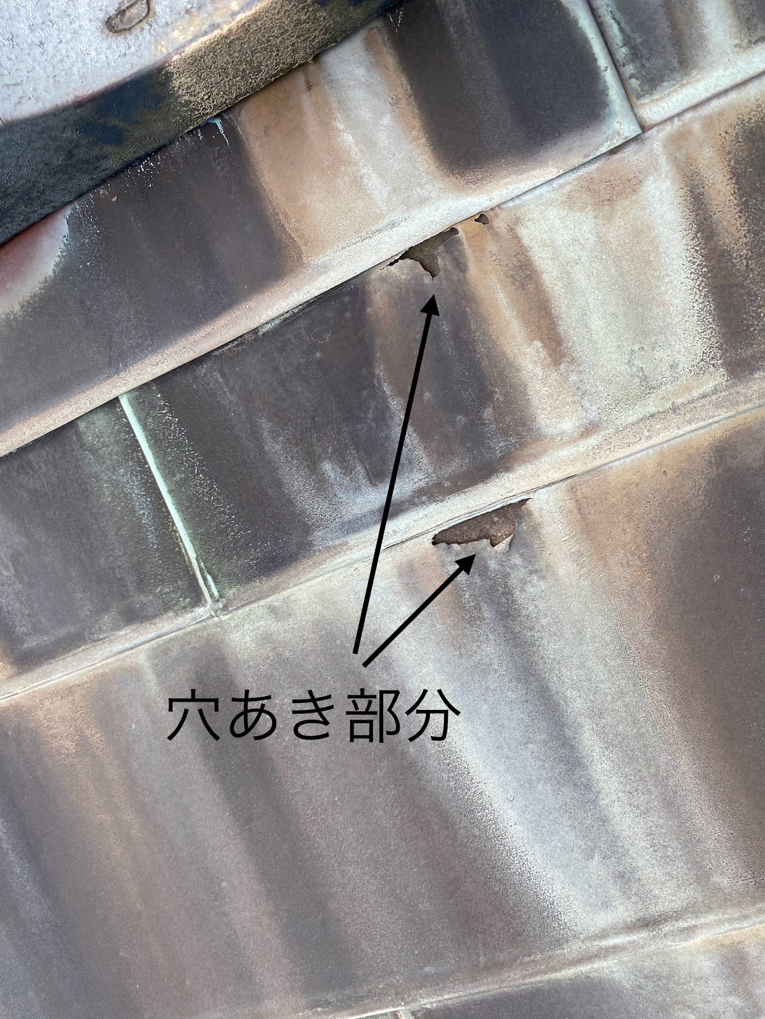 屋根の銅板に穴があいていた為、ガルバリウム鋼板屋根材でカバーいたしました。