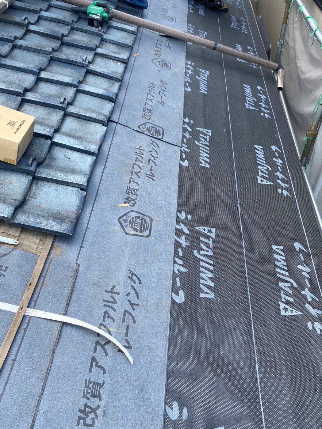 雨漏り防止ともらいサビ防止の為に防水シートを施工しました