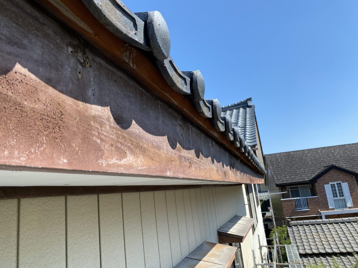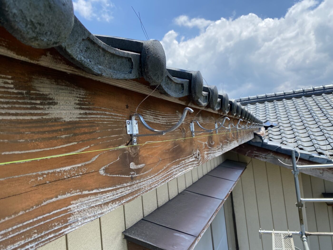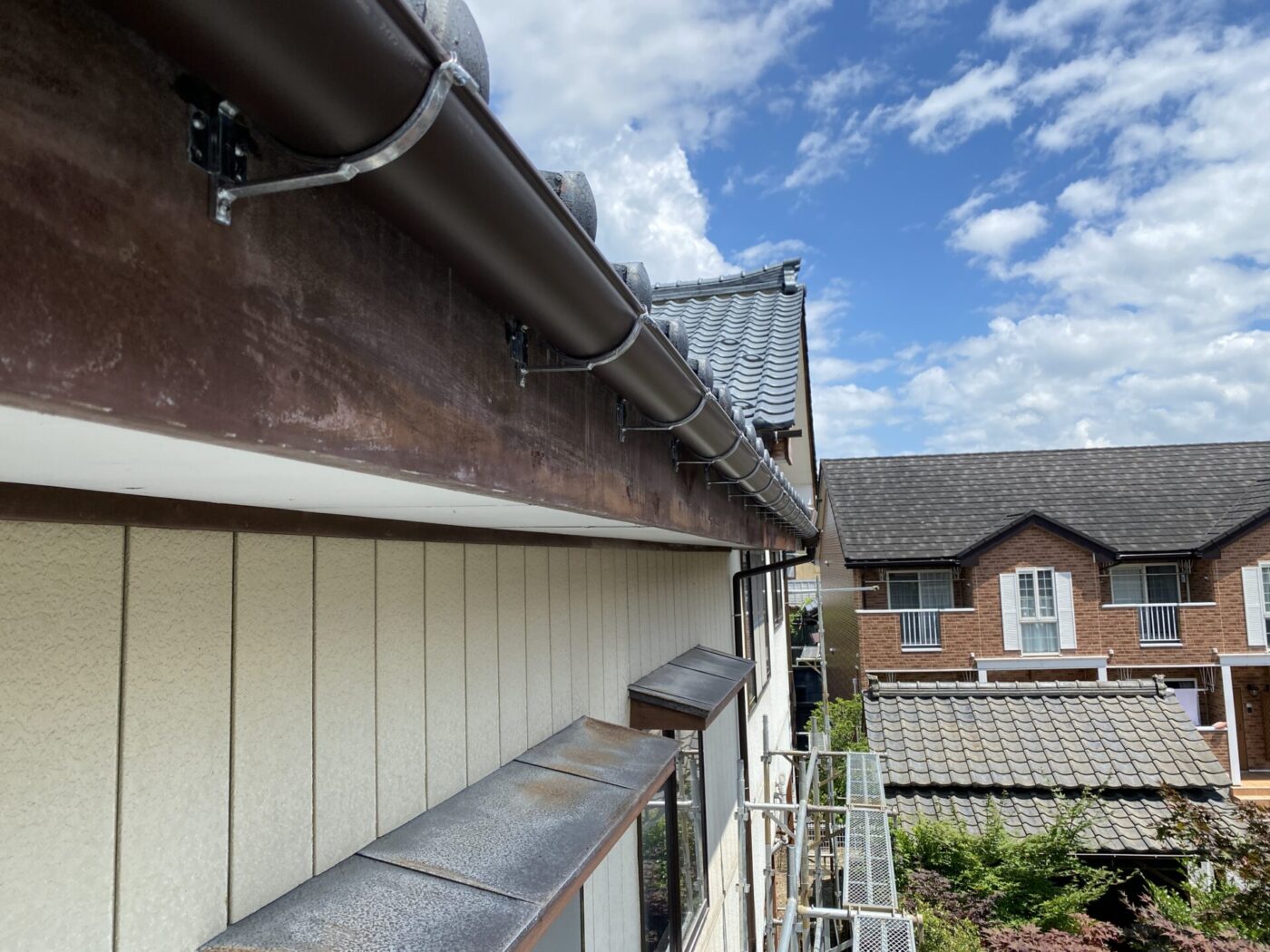 新しく取り付けた軒といは従来のものよりも、鉄心が入っており丈夫なものを選定しました。